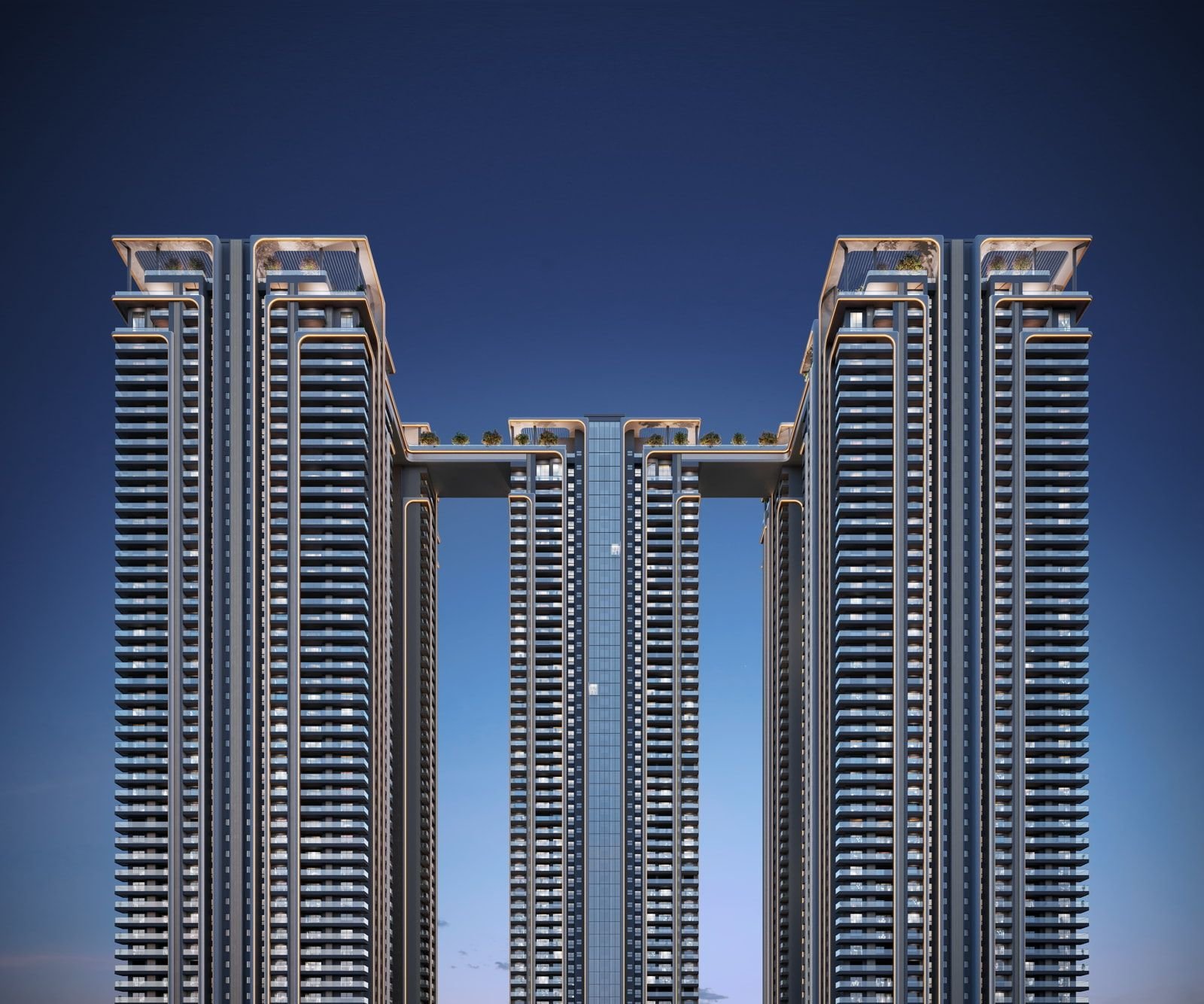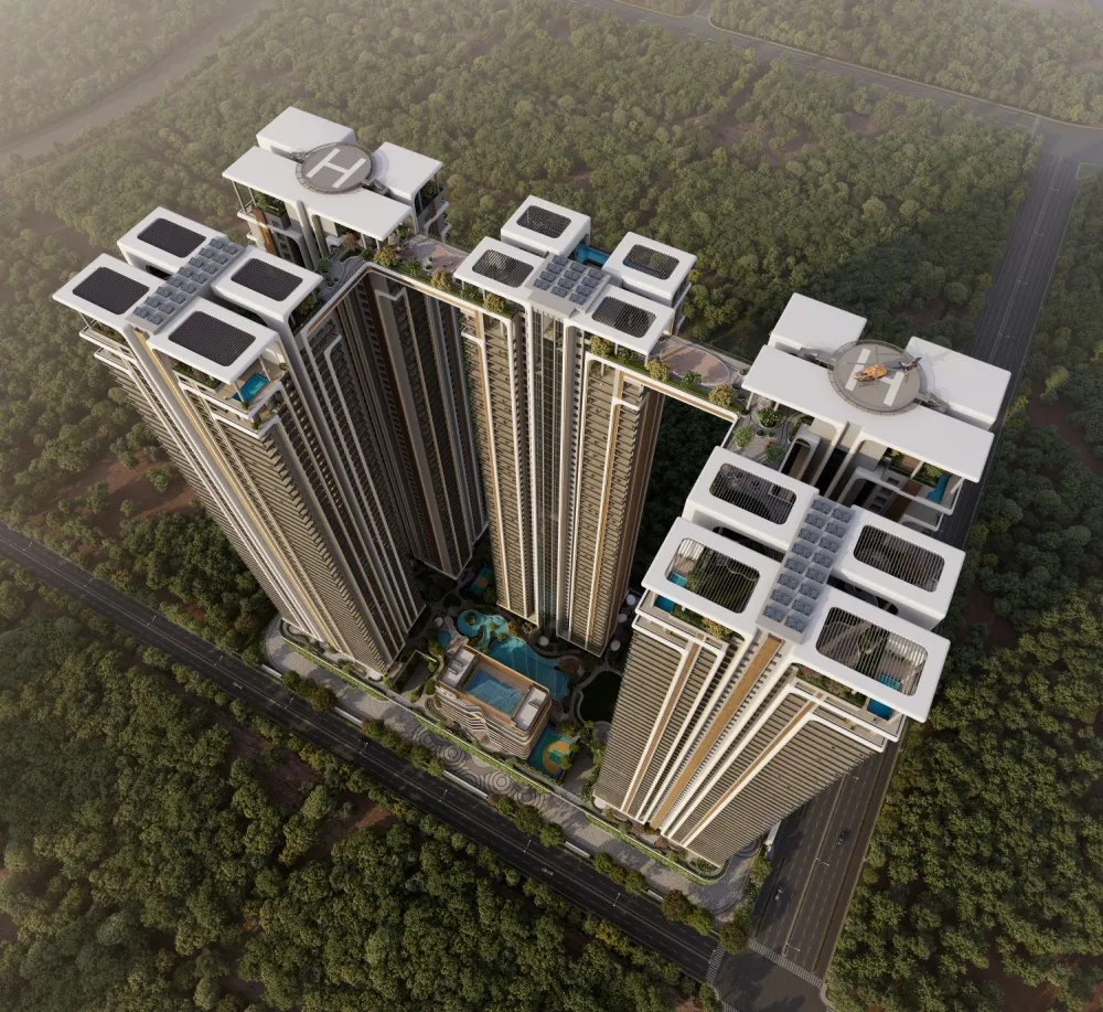 The five iconic towers rise majestically within 7.34 acres rising 63 floors, offers 1,189 thoughtfully designed 3 and 4 BHK residences and 10 signature triplex penthouses with private pools.